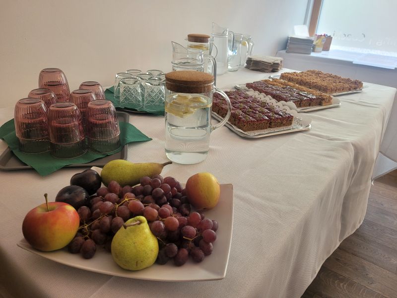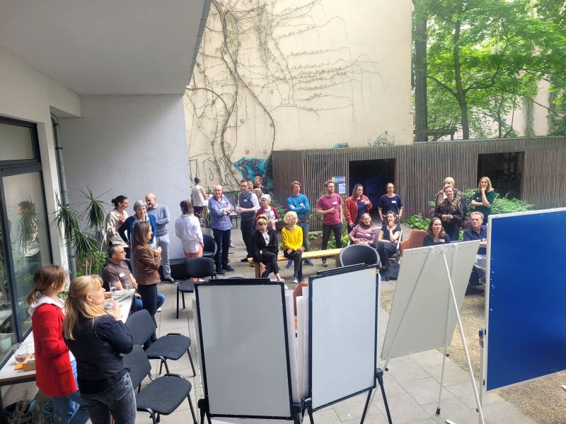 Draußen ist bestes Geburtstagswetter, und einige Gruppen nutzen unseren Innenhof zum Arbeiten. Wie schön! Und: Beste Entscheidung, das Fest nicht im nieselnassen November letztes Jahr zu veranstalten, sondern im milden Mai.